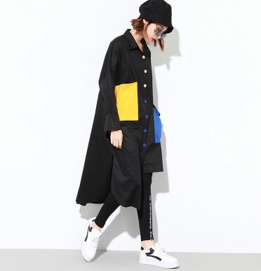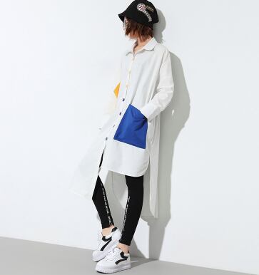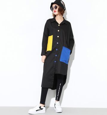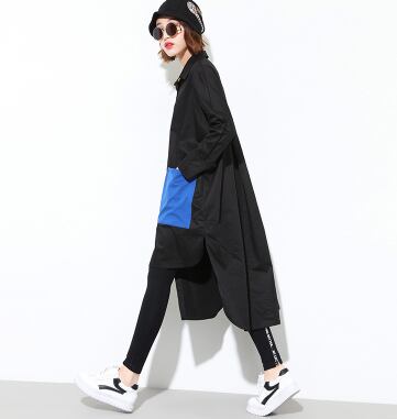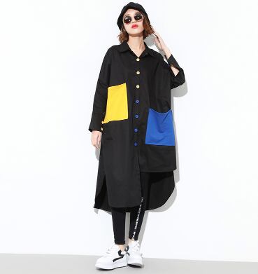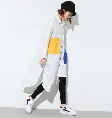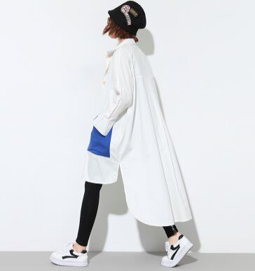 長袖シャツ アシンメトリー 大きなサイズ ロングコントラストカラーシャツ