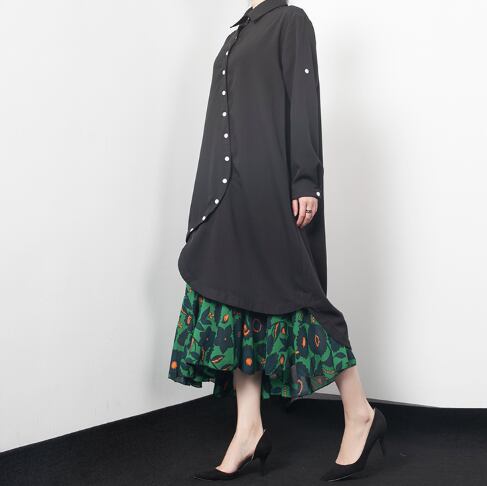 モード系 ワンピース シャツドレス ユニセックス S字ライン アシンメトリー