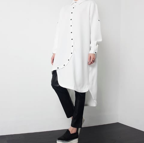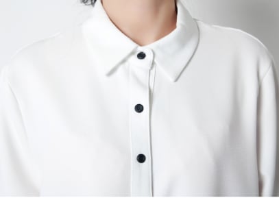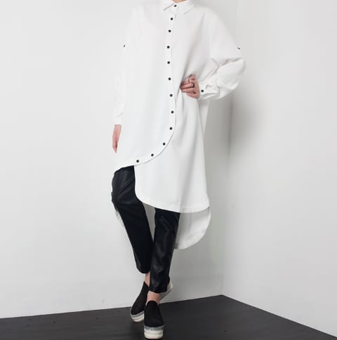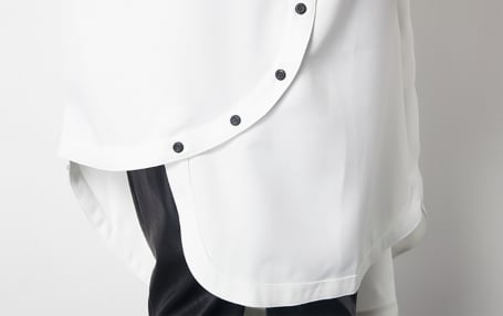 アシンメトリーデザインでボタンをS字状にデザインすることでオリジナリティーを演出しています。