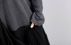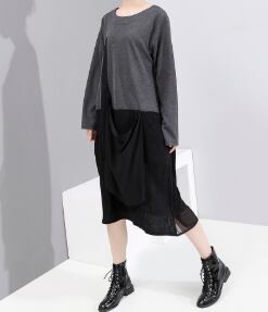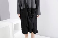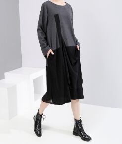 前身頃に不規則な切り替えが特徴のワンピースです。