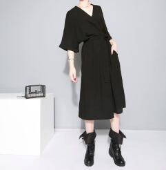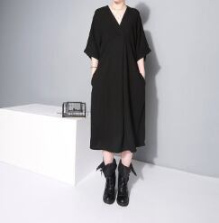 通勤や普段使いにもお出かけにも活躍するVネックのワンピースです。