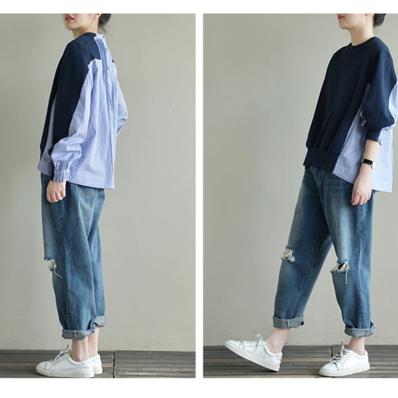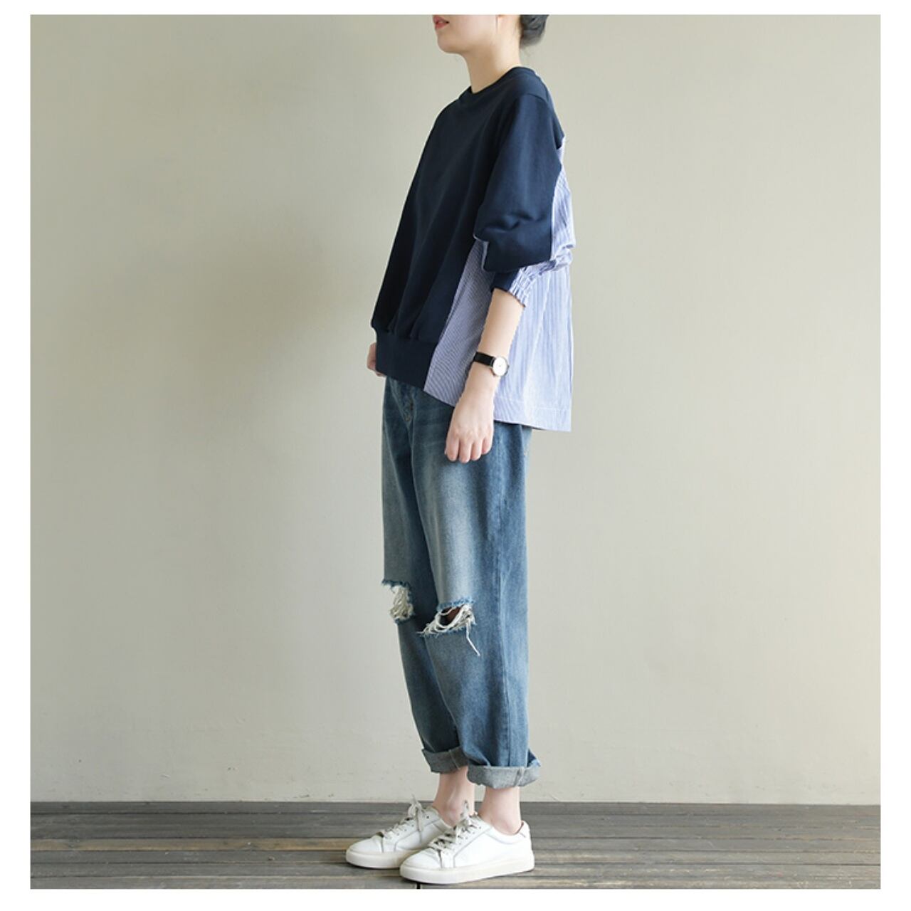 自然素材、ルーズアートショートストライプ切り替え